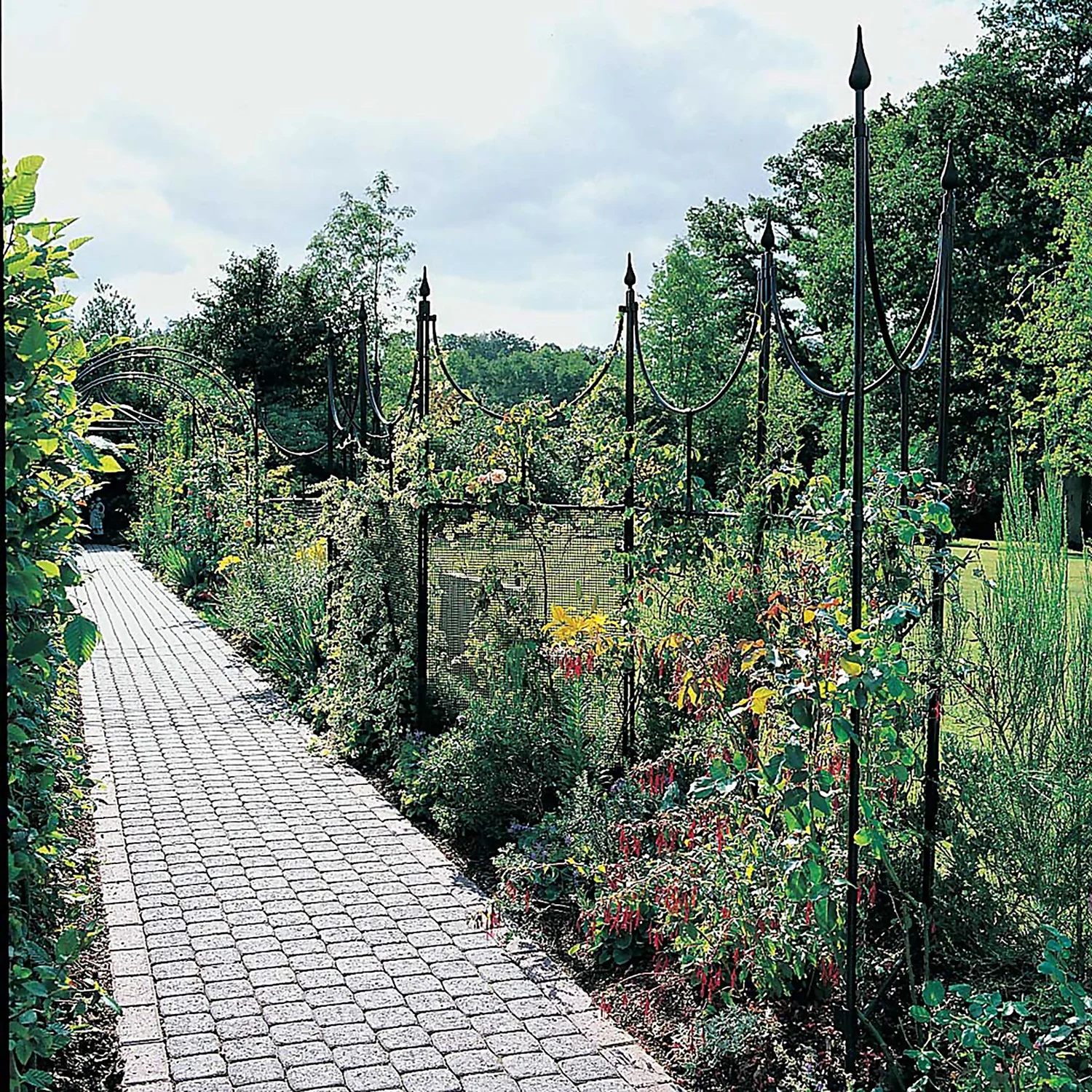 The Byzantine Screen provides a decorative boundary or partition within your garden with gothic finals on top of uprights between sweeping curves.