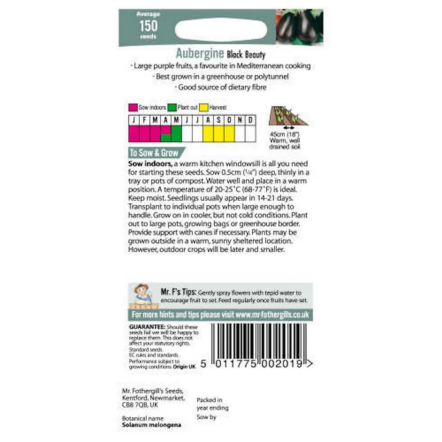 Aubergine Black Beauty (Solanum melongena) has large and glossy dark purple fruits with a delicate and refined flavour.A good source of dietary fibre.