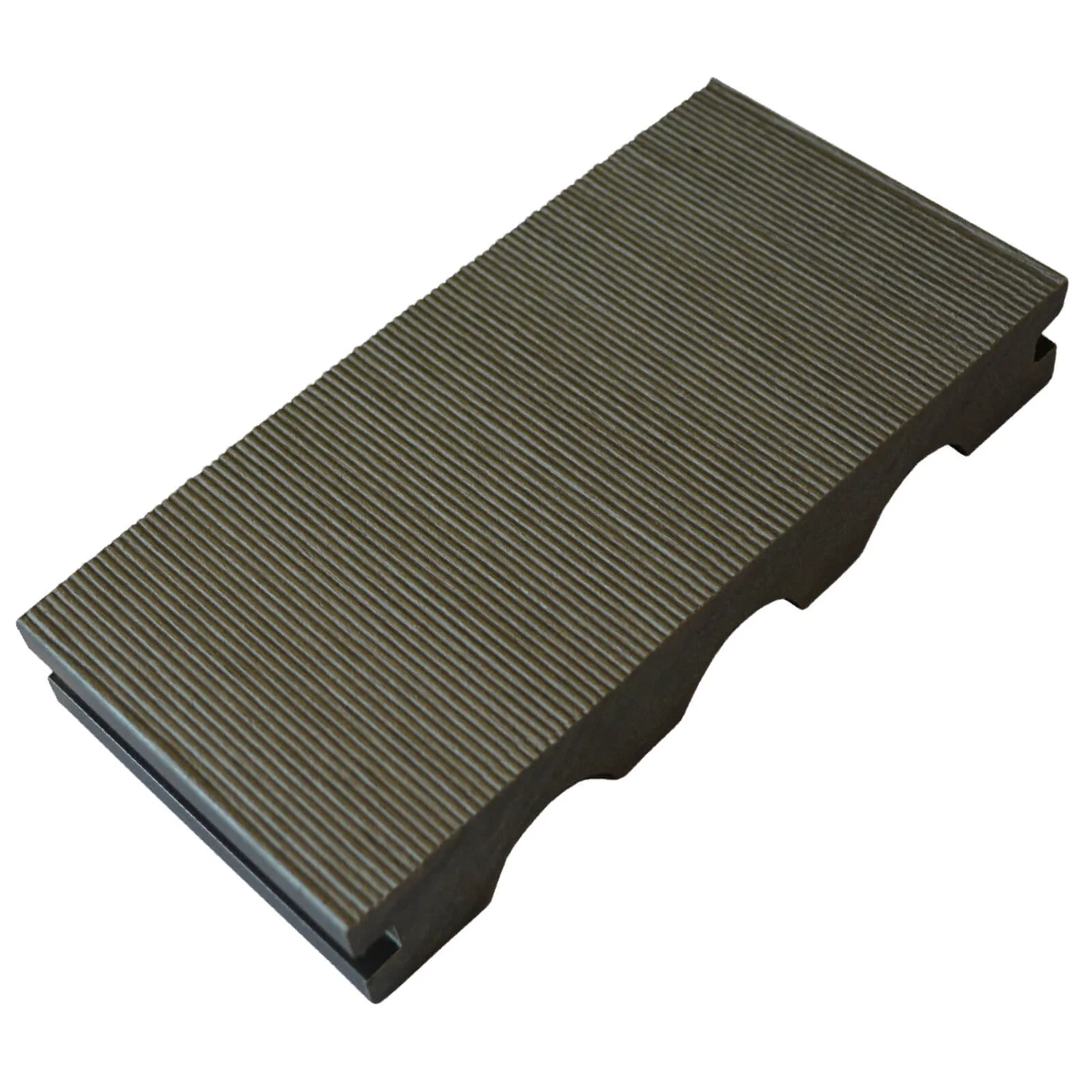 Builddeck composite Heritage range is a reversible board with a low risk of slip groove surface on one side and a timber wood grain effect on the other.
