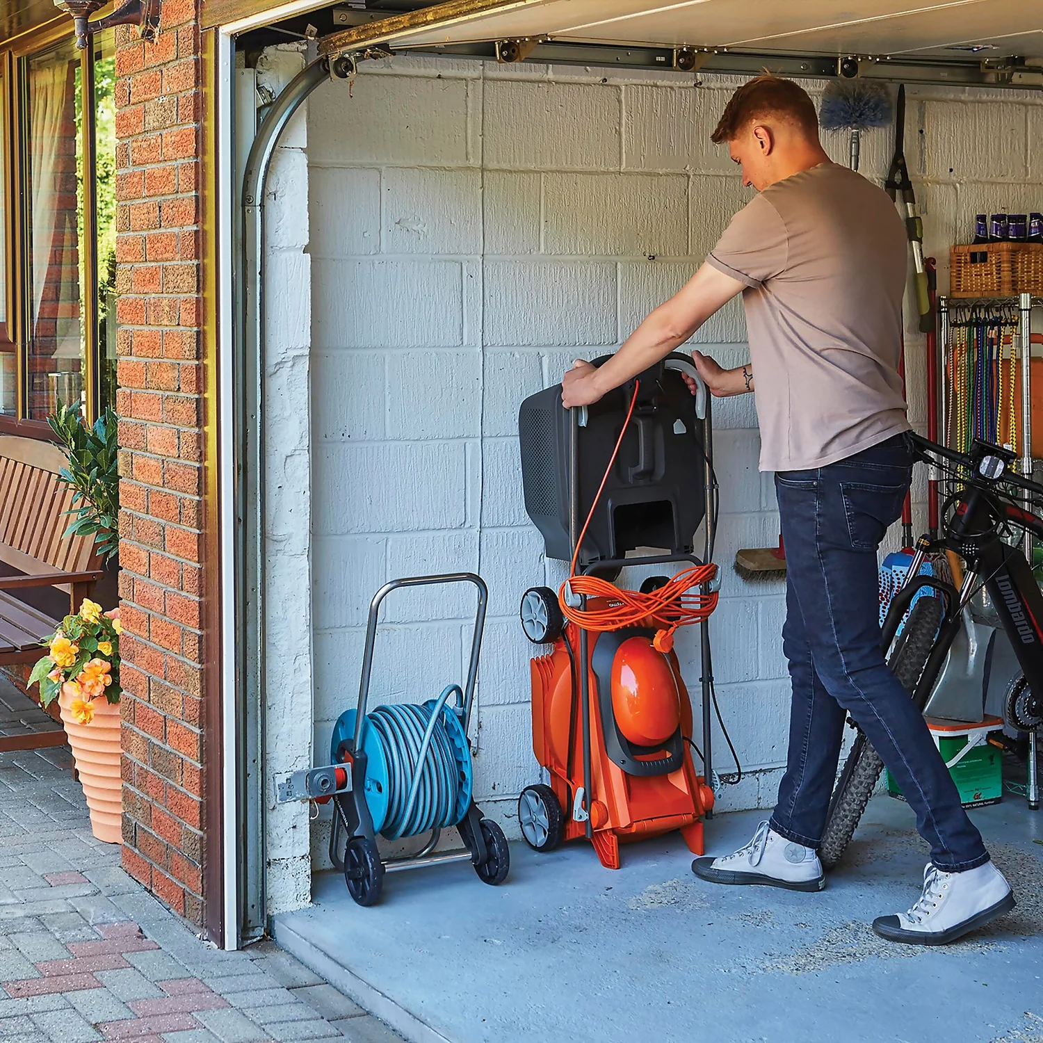 Designed for small to medium gardens, the Flymo EasiStore 380R is a powerful 1600W electric wheeled rotary lawn mower that utilises a 38cm cutting width and a cutting height of 2060mm with 5 steps. This mower features a large easy to empty 46L grass box with a full bag indicator, helping you reduce the amount of times you need to stop and check whilst mowing, as well as a close edge cutting deck, a central height adjust and a rear roller for a beautiful striped lawn finish.