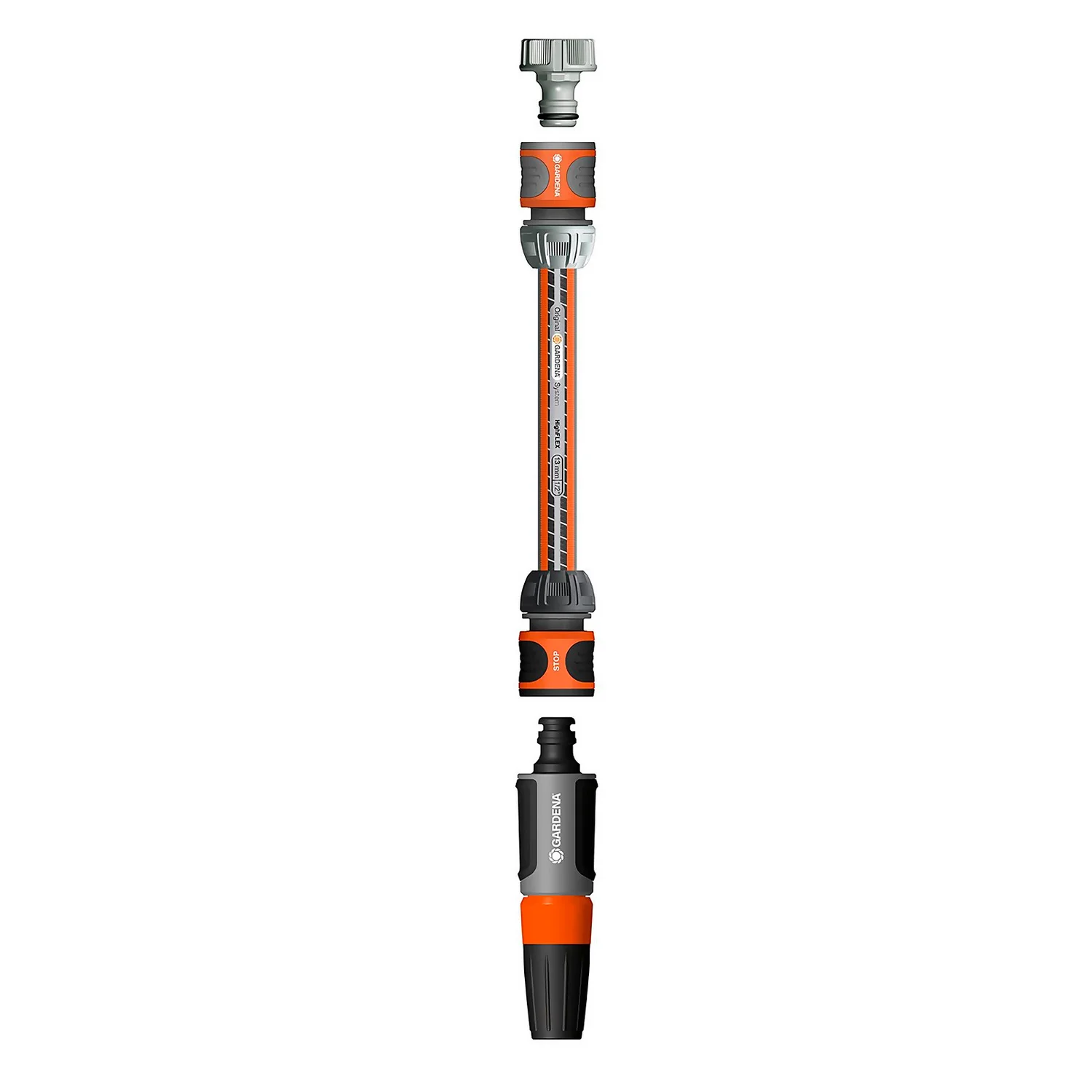 The GARDENA basic system set comes with everything you need for your hose. The set includes a tap connector, water stop, hose connector, and GARDENA cleaning gun. The powerful GARDENA cleaning guns water flow can be adjusted easily by simply turning the nozzle. The power grip feature on the hose connector and water stop ensures a reliable, secure connection between the hose and spray gun.