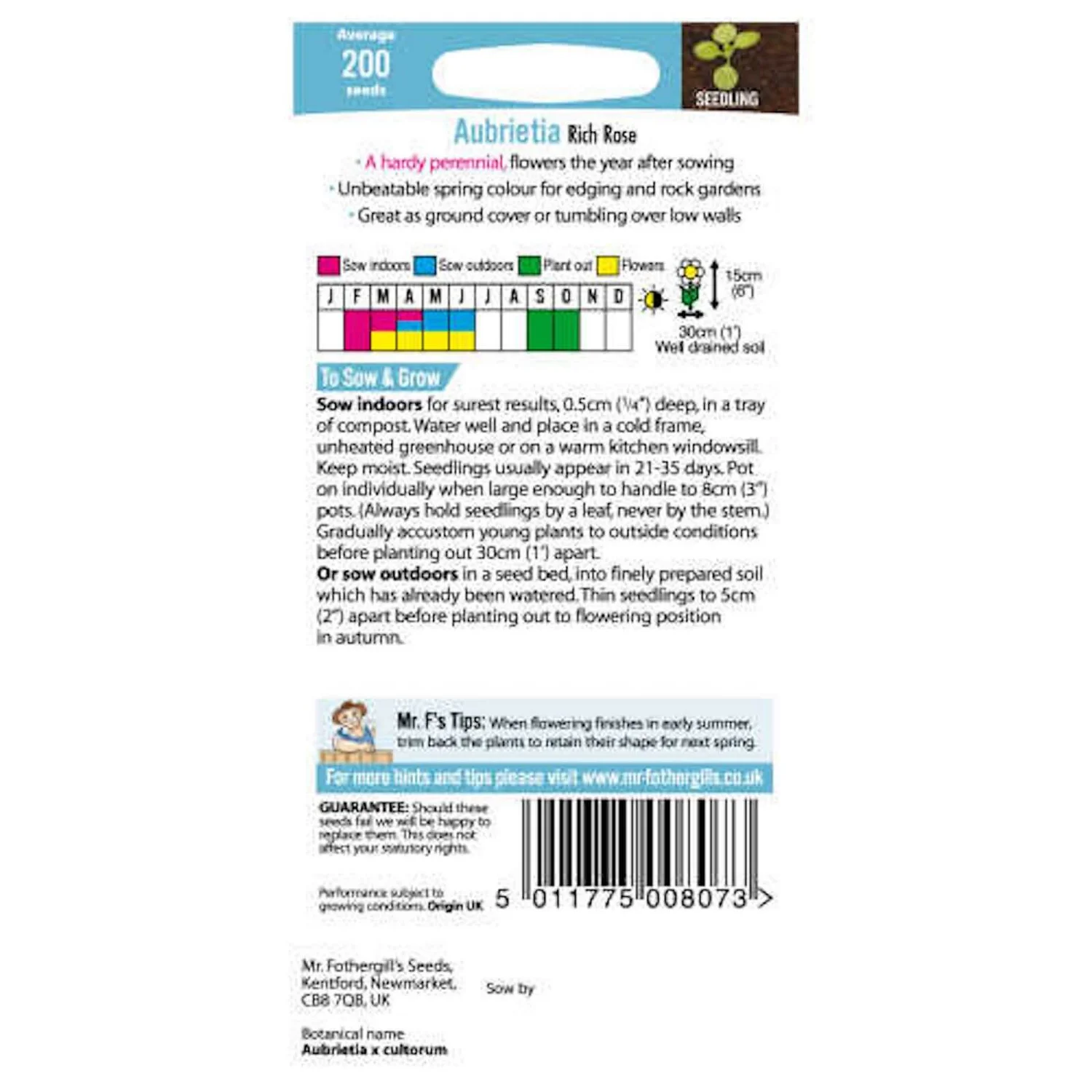 Mr. Fothergill’s Aubrietia Rich Rose Seeds