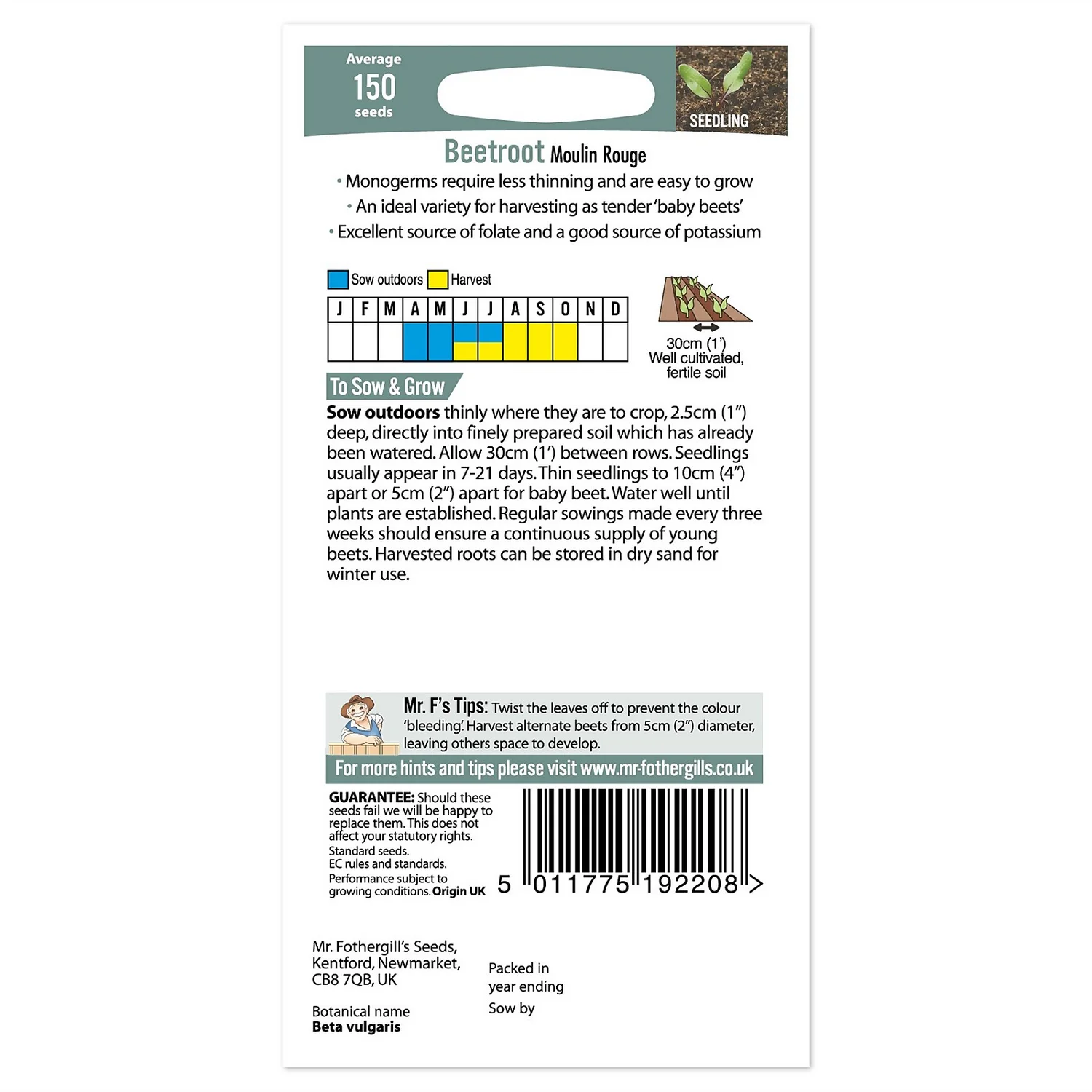 - The sweet-tasting roots of this variety can be harvested as ‘baby beet’ or left to mature.
