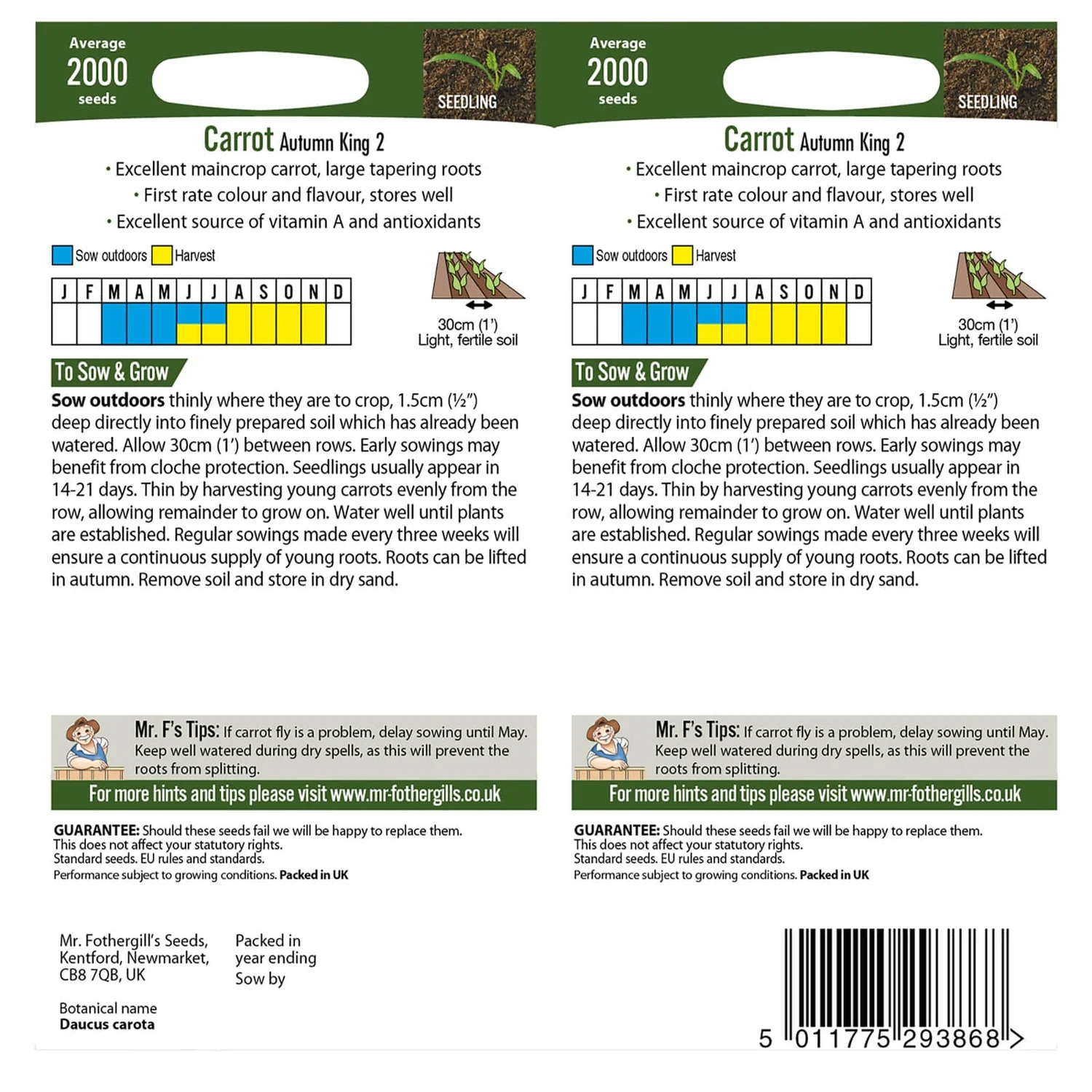 | Product Contains | Seeds will be replaced should they fail |