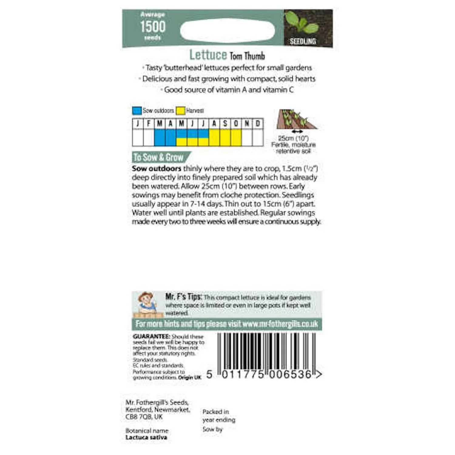 Mr. Fothergill’s Lettuce Tom Thumb (Lactuca Sativa) Seeds