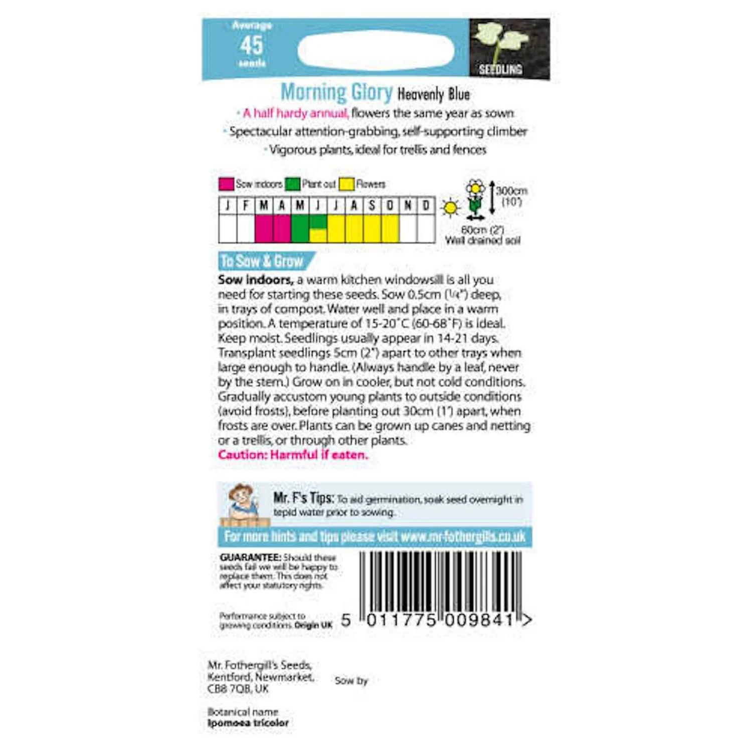 Mr. Fothergill’s Morning Glory Heavenly Blue (Ipomoea Purpurea) Seeds