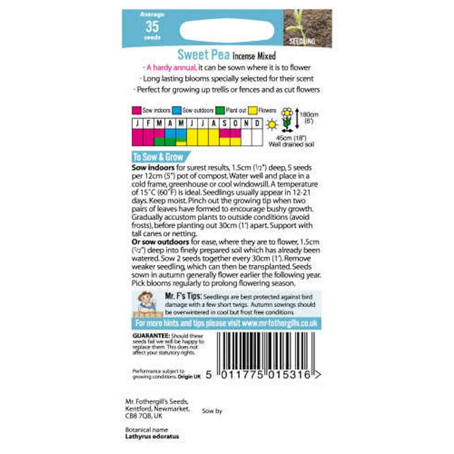 A blend of beautiful sweet peas particularly ideal for cutting so you can enjoy their perfume indoors or out.