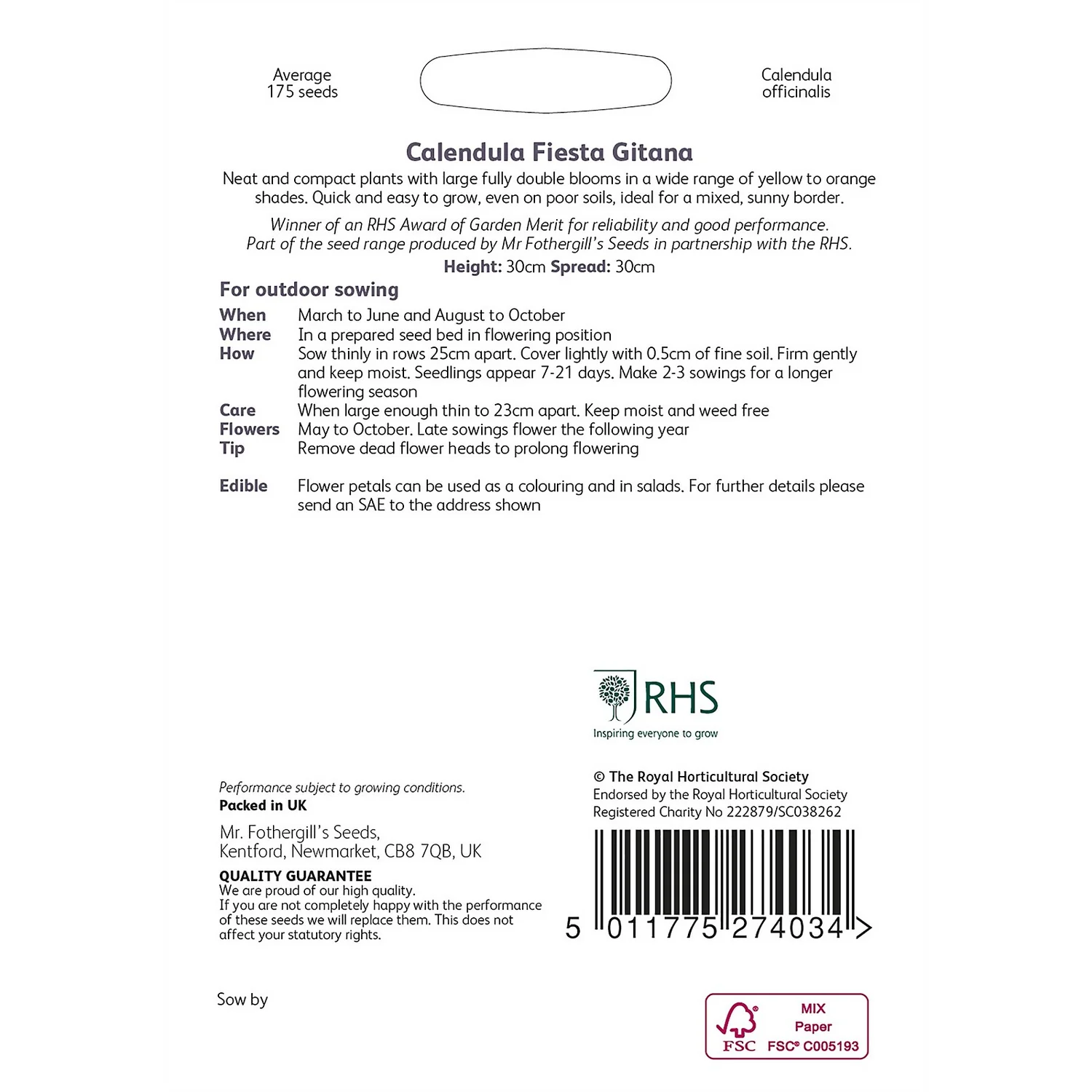 | Product Contains | 175 seeds approx. |