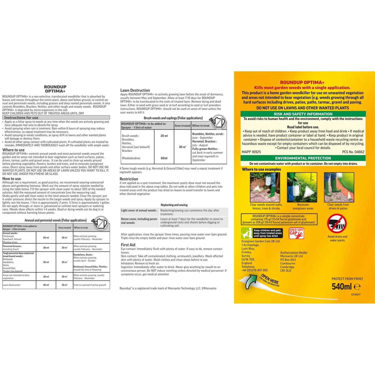 | Additional Information | Do not use on lawns unless you want to kill the grass. Use weed killers safely. Always read the label and product information before use. |