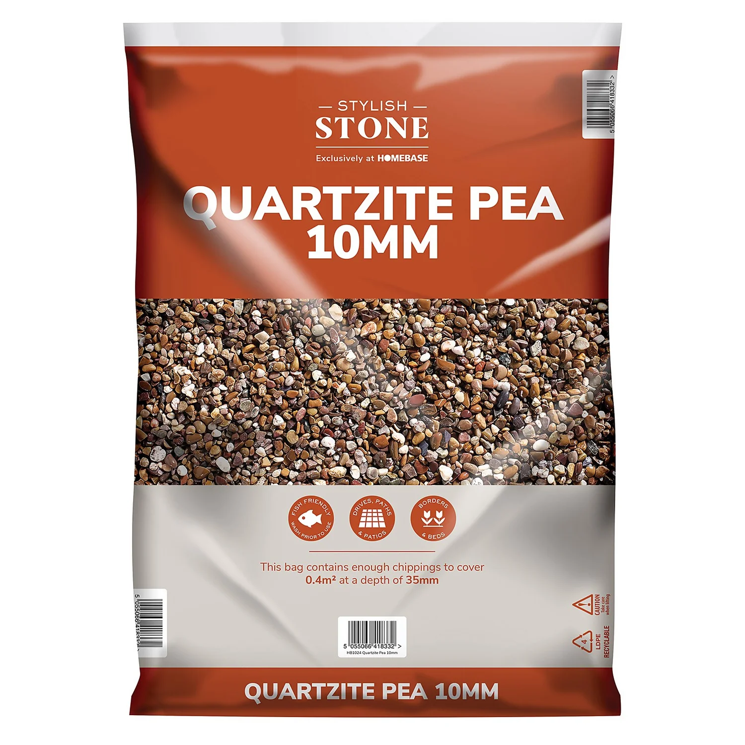 Natural Quartzite Stone is a popular hard wearing blend of quartzite pebbles in rich harvest tones. These 6-14mm pebbles are ideal for your paths, patios and driveways whilst also being a great addition to borders and beds. This product is also fish friendly making it suitable for aquatic use (wash prior to use).