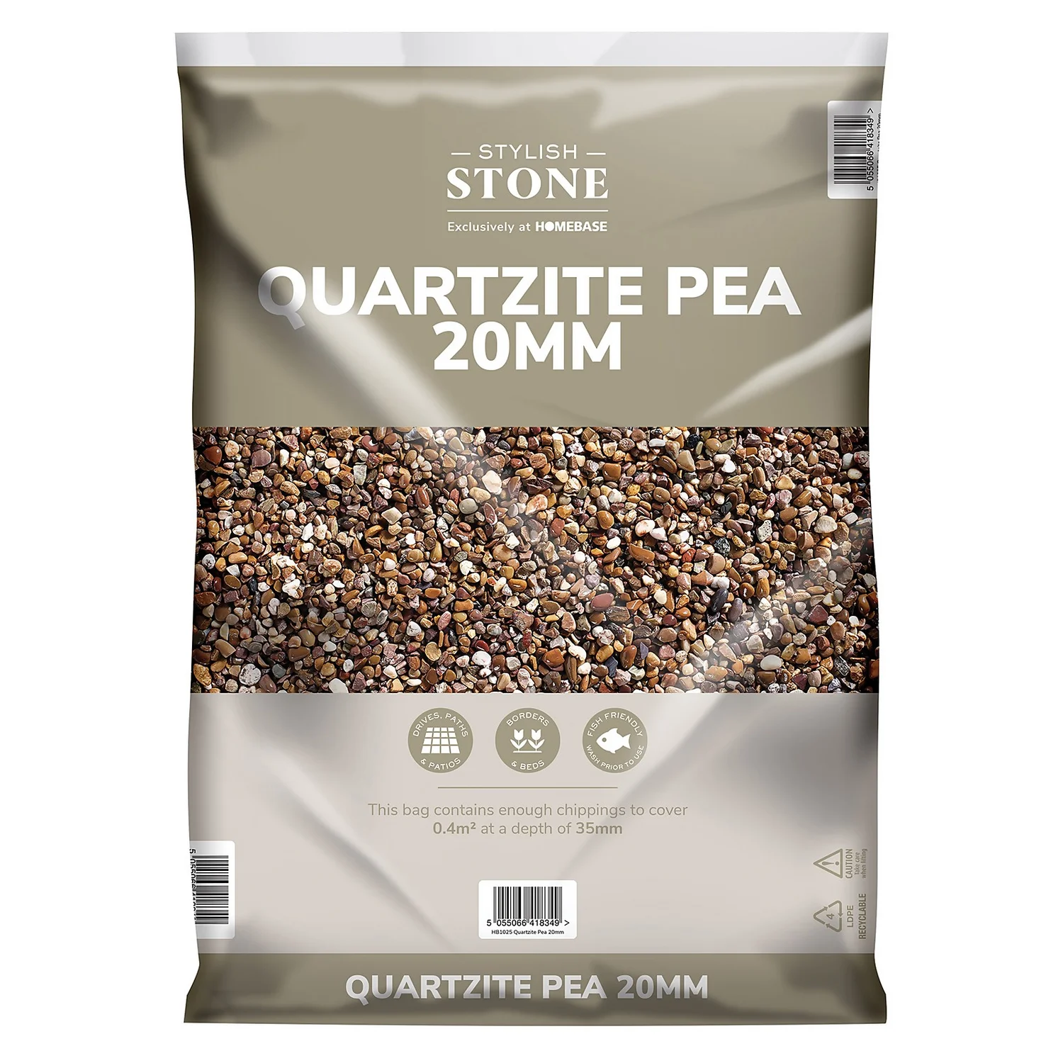 Natural Quartzite Stone is a popular hard wearing blend of quartzite pebbles in rich harvest tones. These 10-20mm pebbles are ideal for your paths, patios and driveways whilst also being a great addition to borders and beds. This product is also fish friendly making it suitable for aquatic use (wash prior to use).